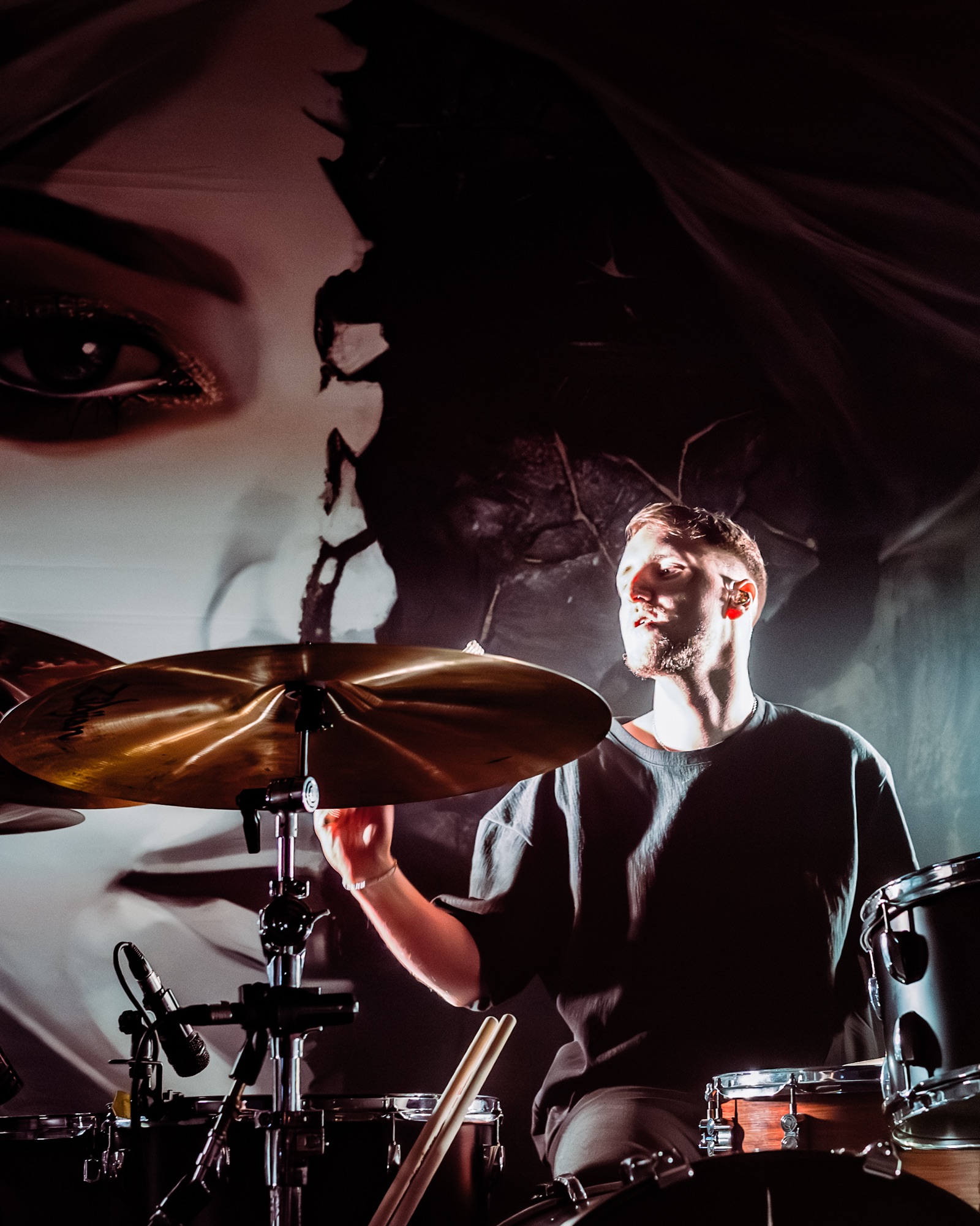 The Narrator, whilst new for many faces in the room, won the crowd quickly with heavy riffs, an engaged and energetic approach and a drum heavy focus (personal appreciation note as a photographer who loves to capture drummers: thanks for the riser at the top of the stage!)